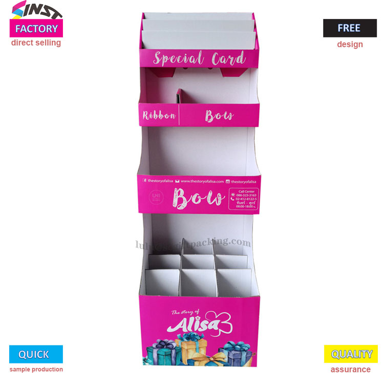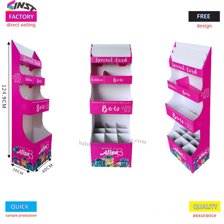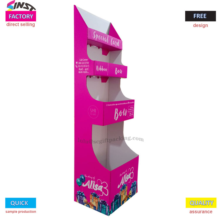 Овај картонски сталак за приказ картонских играчака за слепе кутије користи упадљива ружичаста колор шема боја, која је и прелепа и практична. Као кинески произвођач, Синст-ови производи усвајају трослојни дизајн партиције, са флексибилним дисплејем на доњем слоју и марки и поклон обрасцима исписаним на дну да би побољшали визуелно признање. Материјал је лаган и издржљив, ефективно побољшање приказа производа и изложености бренда.