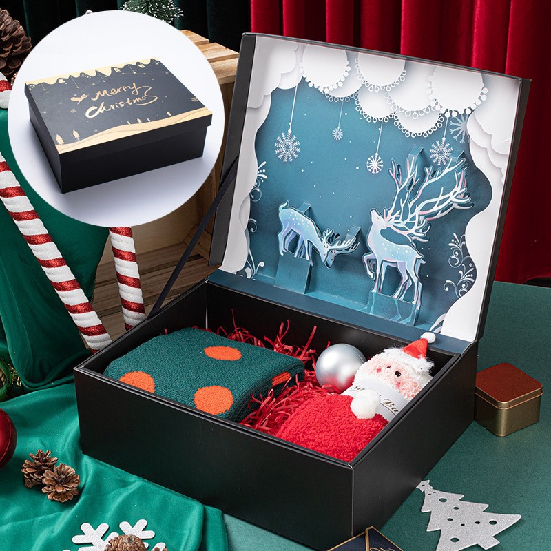 Божићни 3Д кутија за поклон Цхристмас Цхристмас Цреативе је креативан производ пун празничне атмосфере. Са божићним елементима као темом, као што су Деда Мраза, божићно дрвце, пахуљице, јелени, јелени итд. Боје су светле и обрасци су изврсници. Усвајање 3Д стереоскопски дизајн, има снажан осећај за тримензионалност и може представити живу божићну сцену након отварања кутије.