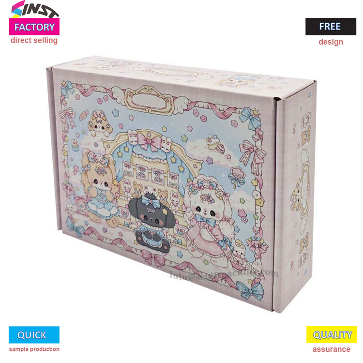 Шарено валовити авионски оквир за одећу има слатку ружичасту шему боја са светлосним плавим акцентима. Кутија је испуњена елементима цртаних филмова попут цветних вирланда, мале животиње, лукове, облаке и срца, стварајући сан и симпатични стил. Од изгледа на сервис, потпуно овлашћује да је и паковање одеће и побољшава жалбу бренда.