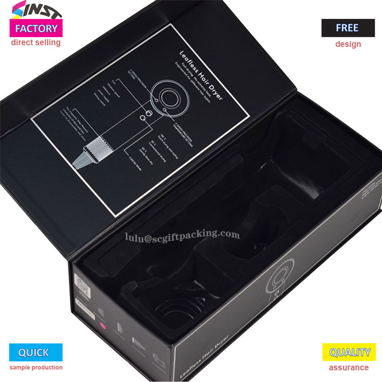 Када отворимо прекривач поклопног оквира за косу, унутрашња прилагођена црна пена утора уско приближава облик сушилице и додатке за косу (млазница, кабл за напајање итд.), Попут "прилагођеног" заштитног слоја, ефикасно одупирући вибрацијама и огреботинама; Отворите поклон кутију за сушење косе да бисте брзо добили основне карактеристике као што су управљање више режима и прилагођавање брзине ветра, што је почетницима олакшало почети у секунди.