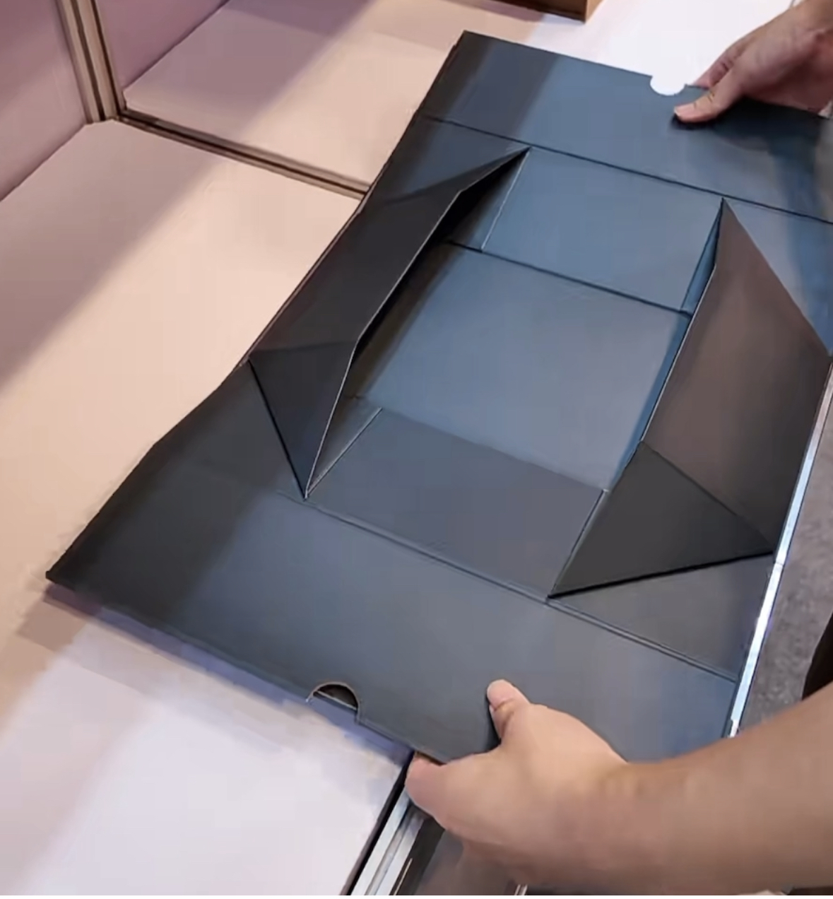 Ово савијајући папир за папирУглавном је у тамно сивој боји, са равном површином, али скривеном домишљатошћу - каросерија има јасна подела подручја (као што је приказано на слици 1), којим водичима да се лако одвијају или преклопи углавном. Када радите, држите оба краја обе руке и лагано их гурните да трансформишу кутију за папир из равне државе у оквир са тродимензионалним складиштењем, штедећи 70% транспортног простора.