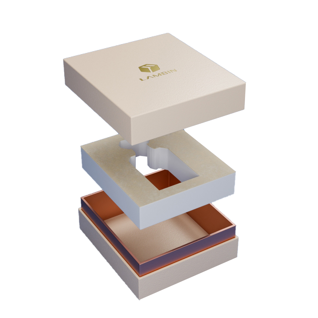 Из експлодираног погледа, дизајнерска логика овог поклон кутије је врло јасна: то је поклон кутија направљена мешањем и састављањем горњег поклопца и унутрашње облоге и унутрашње облоге заједно. Горњи слој је поклопац беж кутија са логотипом златних брендова који је рефрен на површини, пружајући осјетљив и без огреботине; Средњи слој је кључ - облик шупље облоге савршено се уклапа у дно уобичајене боце парфема, попут "малог плата" прилагођеног бочицом. Чак и ако се кутија стави у кофер, боца парфема неће се котрљати и сударати у кутији; Изглед усваја стил уоквиреног поклон кутије, са специјалним папиром који је утиснут на површини и ружином златном специјалном картоном на оквиру. Облога је направљена од белог Ева Фланнел тканине. Од распакирања на приказивање, сваки угао одише луксузне текстуре.