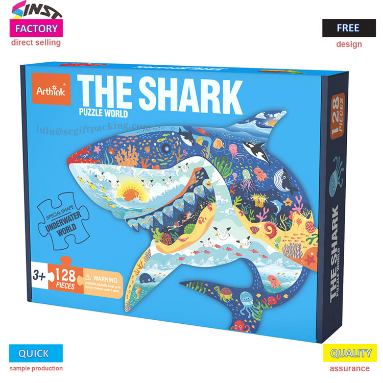 Прошле недеље сам срео Зханг Јиеа у изложбеној сали. Држала је ајкулупуззле поклон кутијауправо је примила и радосно узвикнула: „Моје дете ју је отворило и викнуло: 'Мама, види! Зуби велике ајкуле ће заблистати!'“ Гледајући у правцу у ком је показала, ајкула на плавој поклон кутији била је прекривена малим рибљим коралом по целом телу, а након што је склопило 128 делова слагалице, изгледало је као наша нова пливајућа слагалица - ово је изгледало као ново лансирање у води. СХАРК ПУЗЗЛЕ ВОРЛД, који је уједно и шарена ванземаљска поклон кутија на слици.