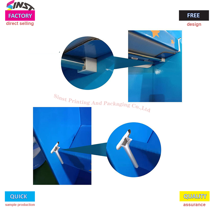 Промотивне полице за играчке у тржном центру имају више детаља. Билборд се лако раставља и узима. Задња страна лежишта је пресавијена и уметнута у сталак за екран. Утор за картицу на позадинској табли се лако склапа. Задебљан је ПВЦ-ом и има супер носивост. Валовити картон Материјал је безбедан, еколошки прихватљив и може се рециклирати.