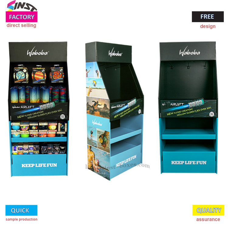 Овај сталак за дисплеј у црно-плавој боји, дизајниран посебно за летеће играчке, фокусира се на „бренд јаку експозицију + екран заснован на сценама“ као своју срж, прецизно решавајући болне тачке „тешке за привлачење пажње и лаке за затрпавање“ летећих играчака комерцијалних супермаркета и постаје „саобраћајна одговорност“ за дечије играчке и области спортске опреме. Вишеслојна полица за излагање играчака је веома флексибилна и савршено одговара читавом низу летећих играчака: